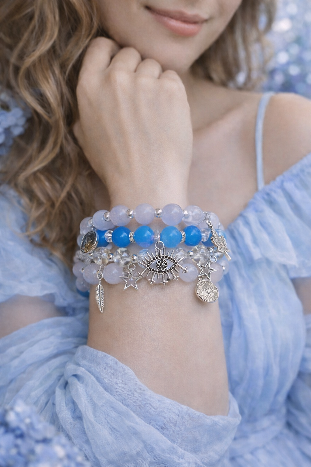 Handcrafted Evil Eye Bracelet Stack – Set of Four – Inspired by the Protective Powers of the Universe.