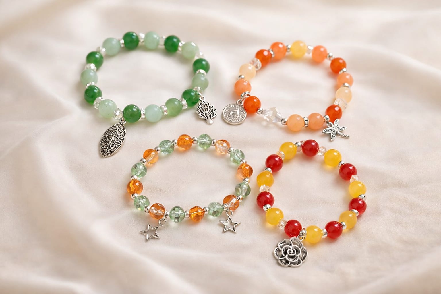 Handcrafted Colorful Charm Bracelet Stack – Set of Four – Inspired by the Rich Colors of Nature in Full Bloom.