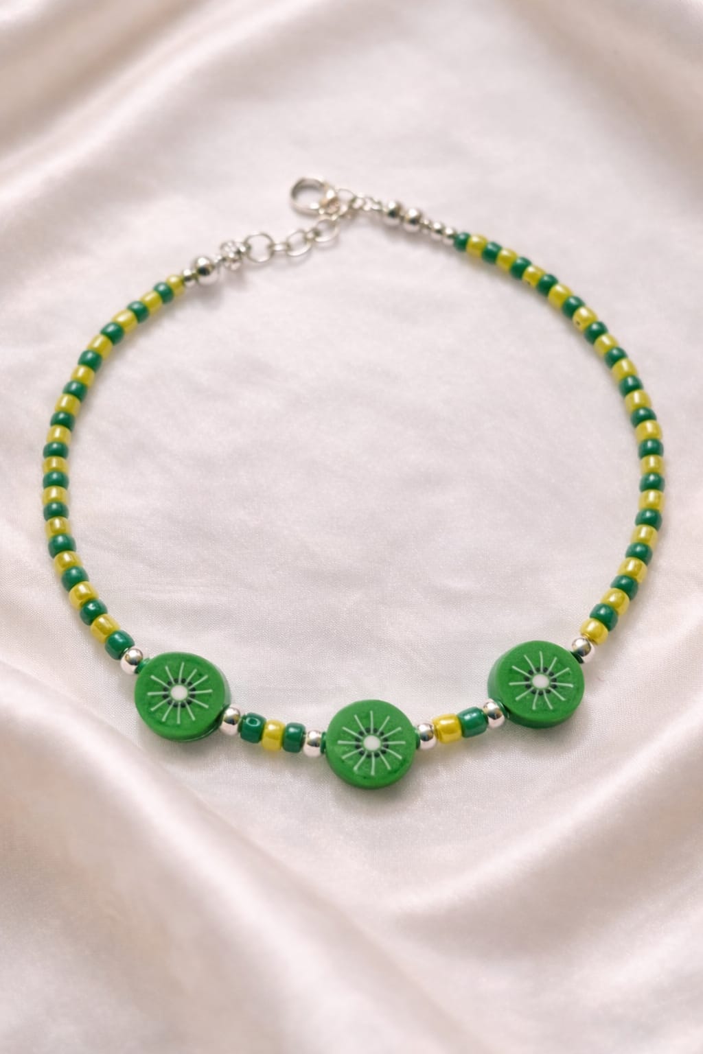 Handcrafted Beaded Kiwi Anklet – Inspired by the Succulent Sweetness of Sun-Ripened Kiwis.