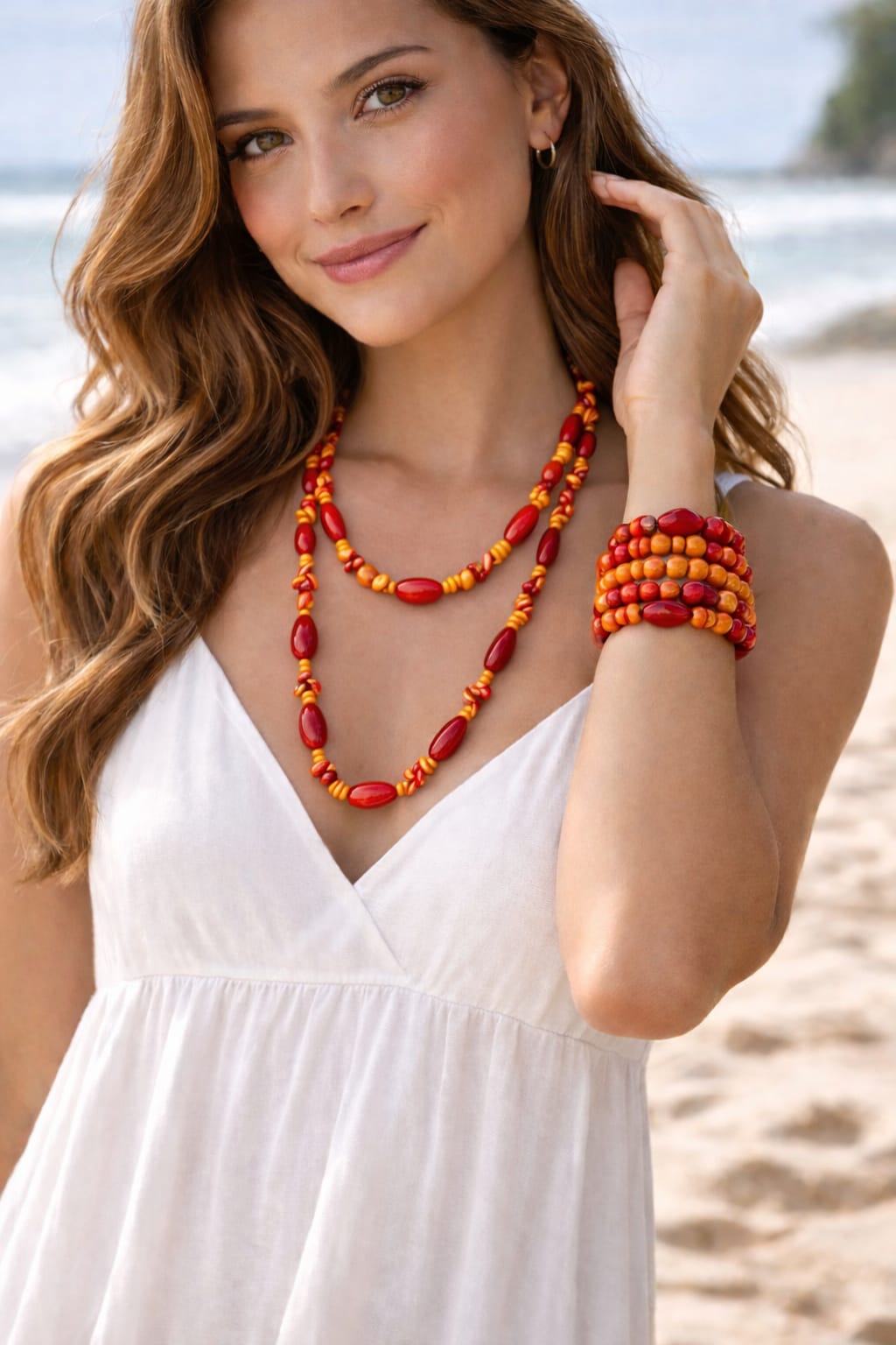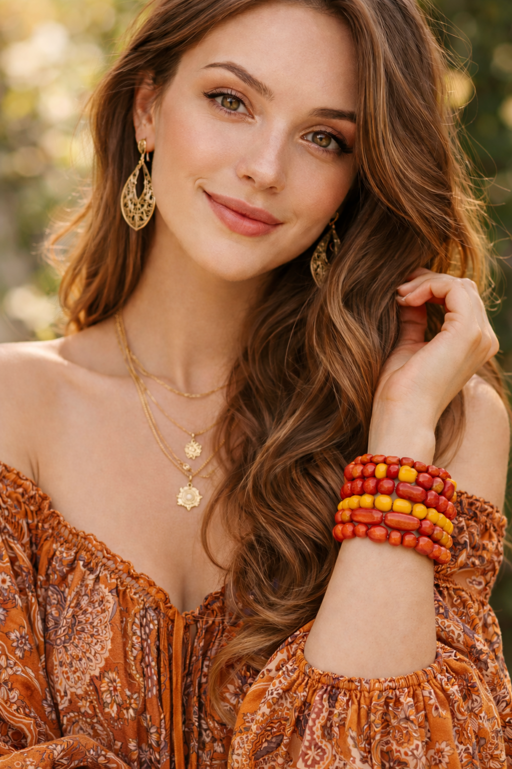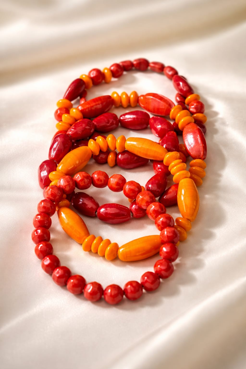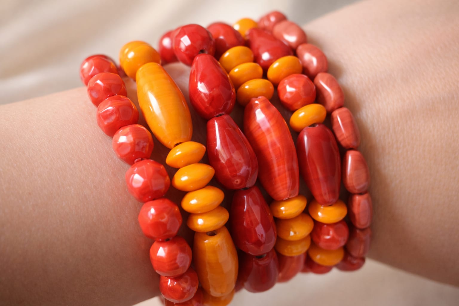Inspired by the glow of cozy fall evenings and pumpkin-spice warmth, this handcrafted stack of six stretch bracelets features glossy ceramic beads in rich reds, burnt orange, and warm amber tones. Bold yet comforting, they’re perfect for autumn styling, festive looks, and layering with seasonal neutrals. Easy to wear, gift-ready, and perfect for wrapping your everyday look in a soft autumn embrace. 🍂✨