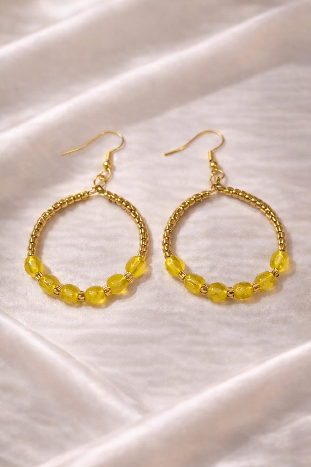 Handcrafted Yellow Hoop Earrings β Inspired by the Magic of Morning Sunlight Dancing on Dewdrops.