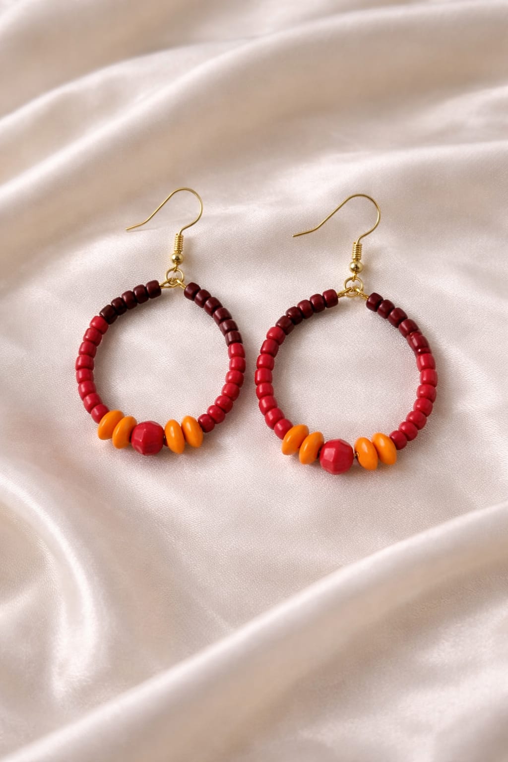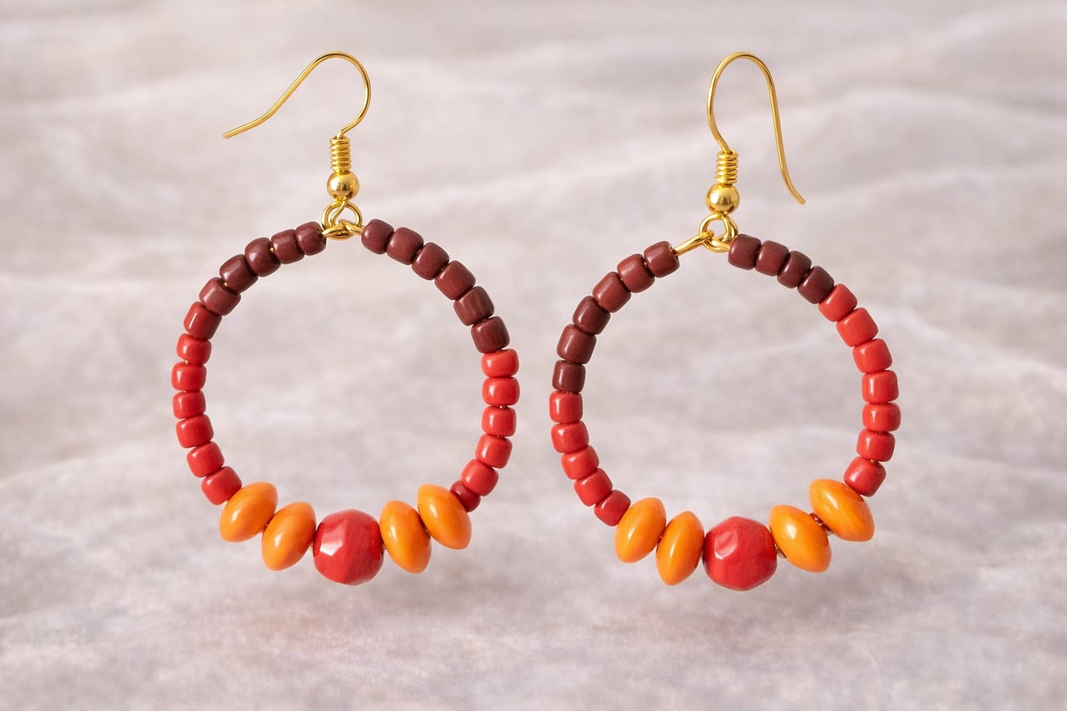 Inspired by glowing clay at golden hour and autumn’s rich landscapes, these handcrafted hoop earrings blend terracotta, cinnamon brown, and molten orange beads with delicate gold accents for a look that feels warm, earthy, and beautifully radiant. Lightweight and gift-ready. ✨